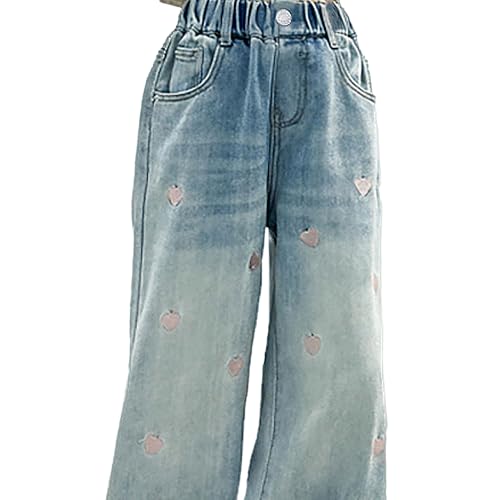 HOT ! Girls' High Waist Wide Leg Jeans, Loose Denim Pants with Heart Embroidery - 4 Pockets Fashion Trousers for Girls