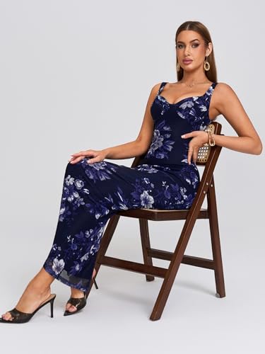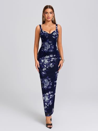 HTZMO Women Summer Floral Bodycon Maxi Dress V Neck Halter Sleeveless Casual Wedding Guest Party Elegant Long Dresses 1