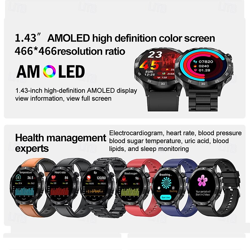 $54.49 - iMosi ET381 Smart Watch 1.43 inch Smartwatch Fitness Running Watch Bluetooth ECG+PPG Temperature Monitoring Pedometer Compatible with Android iOS Women Men Hands-Free Calls Waterproof Media Control 2025. Shop for cheap Smartwatch online? Buy at lightinthebox.com on sale today!