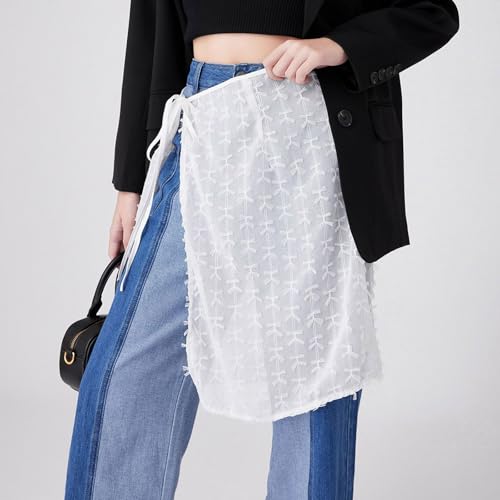 Women Korean Layering Half Skirt Hip Scarf Vintage Elegant Bowknot Hip Covering Lace Up Bandage Apron Wrap Skirt White 1