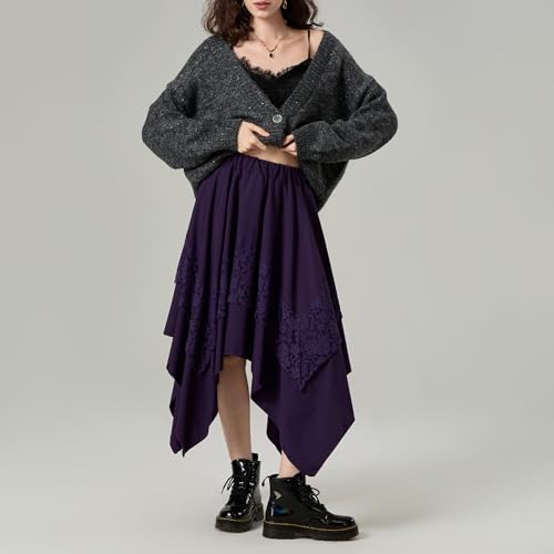 More information about Women's Boho Midi Skirt Flowy Fairy Skirt Y2k Contrast Lace Layered Asymmetrical Skirts Streetwear