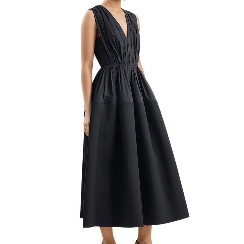 Foreign Trade Women's Clothing Slimming Dress Black V Neck Long Skirt for Casual Outings 1