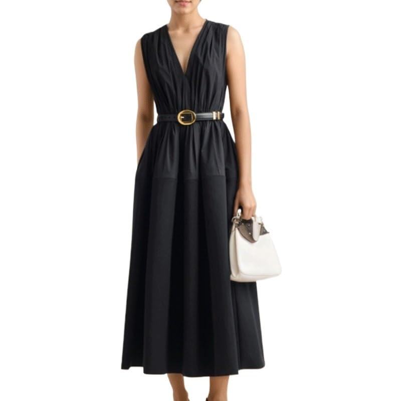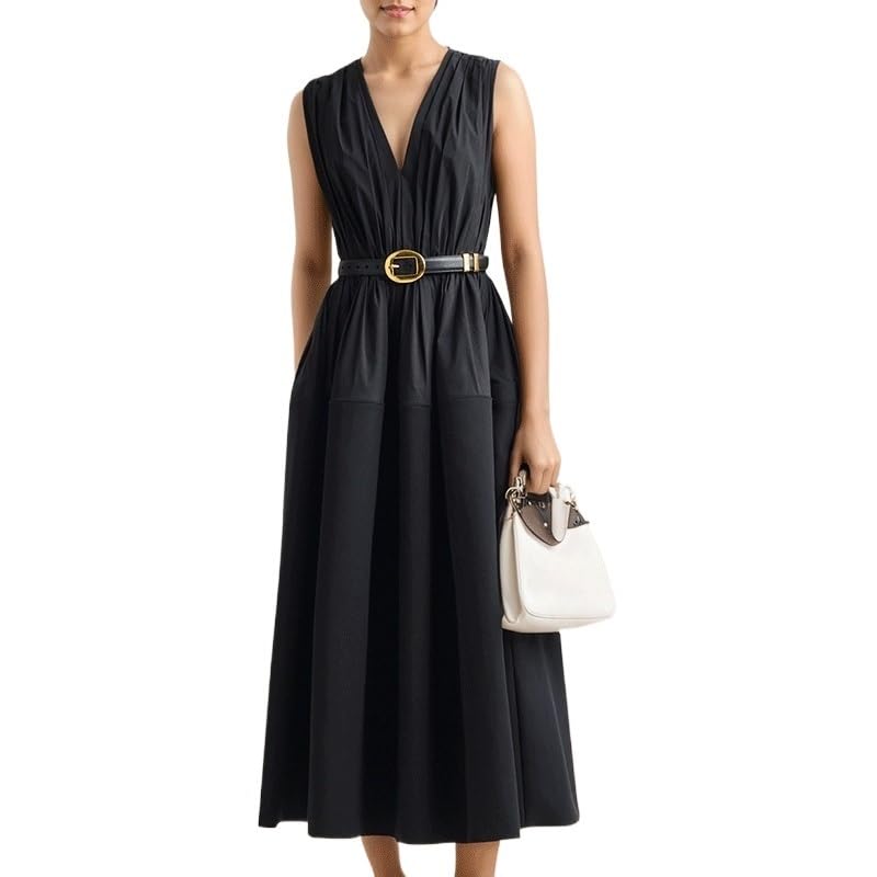 Foreign Trade Women's Clothing Slimming Dress Black V Neck Long Skirt for Casual Outings 4