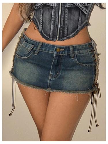 More information about WDIRARA Women's Lace Up Side Bodycon Denim Mini Skirt Y2k Low Rise Frayed Hem Jean Skirts