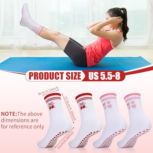 Jspupifip 2 Pairs Pilates Socks with Grip for Women Embroidery Non-Slip Yoga Socks with Heart Striped Cherry Bow Patterns for Barre Workout Hospital (2 Pairs) 4