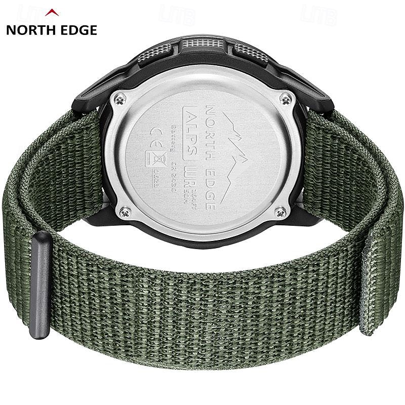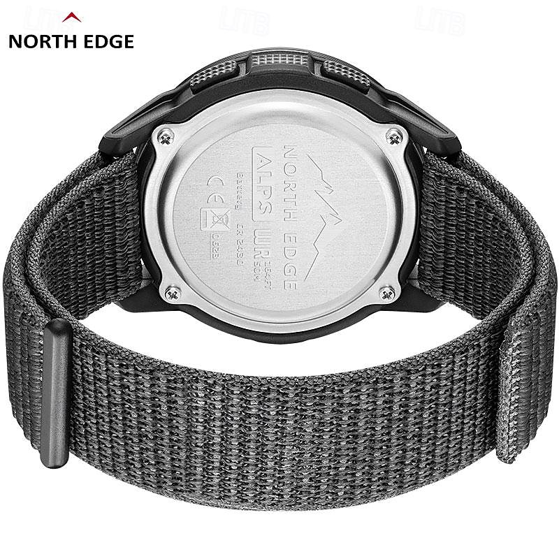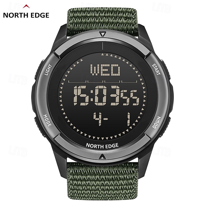 NORTH EDGE Men Digital Watch Outdoor Sports Compass Stopwatch Alarm Clock Date Nylon Strap Watch 12