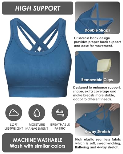 • 【Unique Criss-Cross Design-Not just Cute】The innovative double design with sexy cross back,allows you to wear womens sports bra on its own or pair criss-cross sports bras for women with other athletic wear,offers an extra back support and maximize shoulder comfort and allows for a full range of movement. These high impact sports bras for women are the perfect combination of fashion and functionality, whether you're dancing, running,at the gym or anywhere