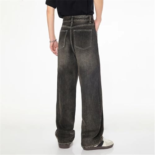 HOT ! Men's High Street Hip Hop Wide Leg Loose Straight Dirty Pants Classic Retro Casual Jeans