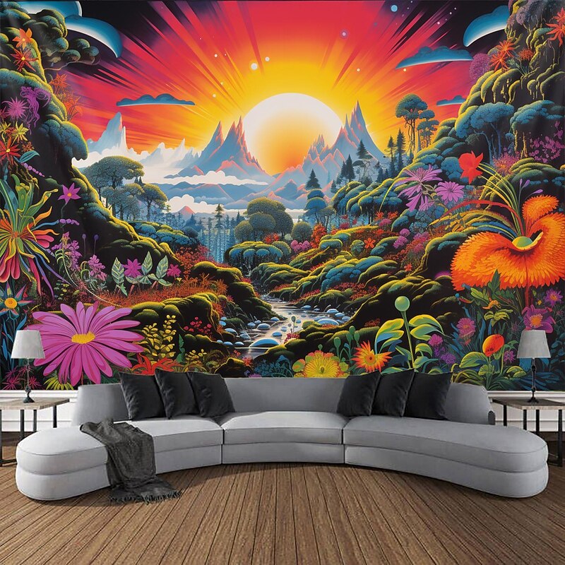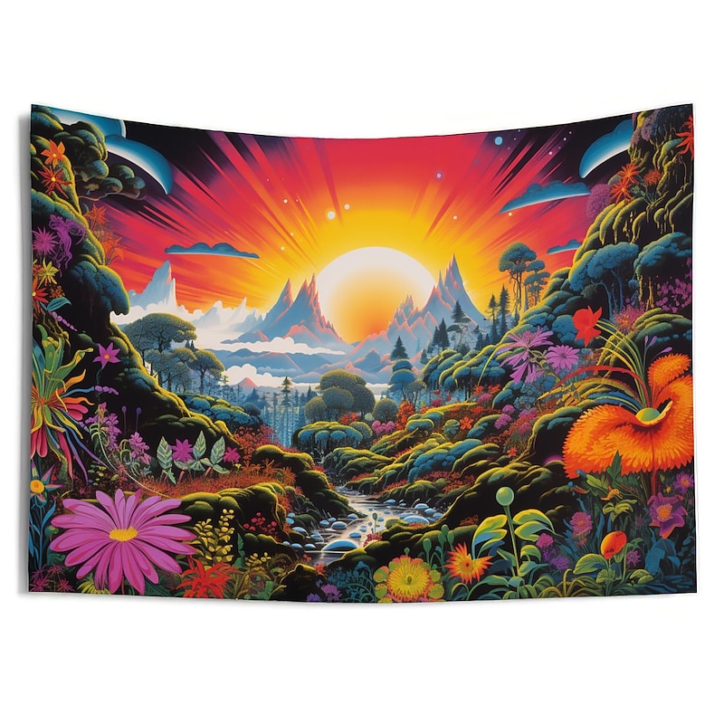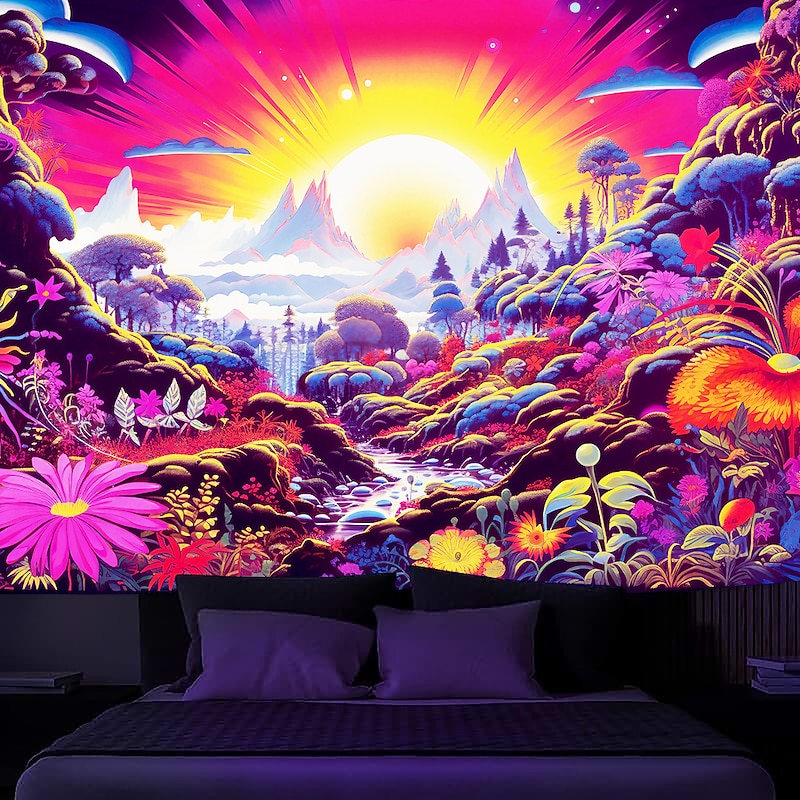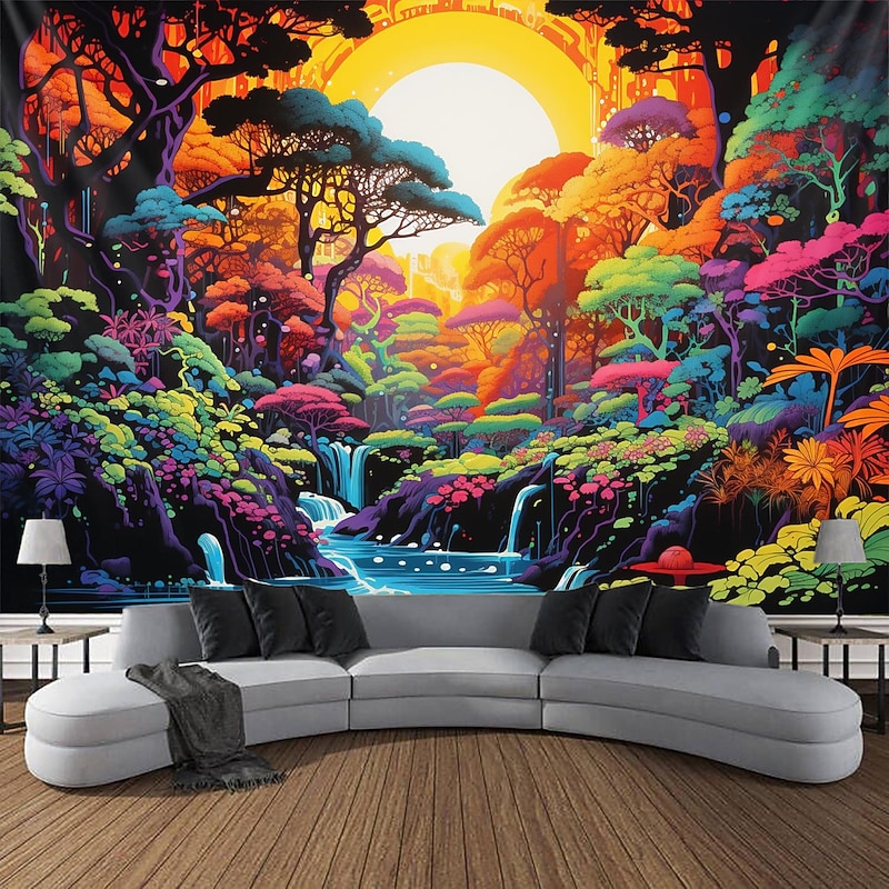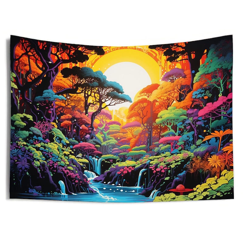 Highlights 【Durable Construction】 Crafted with high-quality polyester fabric, this tapestry is built to last. Its robust composition ensures that you can enjoy its beauty for years to come. 【Soft and Lightweight】 This tapestry is soft to the touch and lightweight, making it perfect for both indoor and outdoor use. 【Multiple Size Options】 Available in different sizes to accommodate any room's dimensions. 【Intricate Design】 The tapestry features a captivating design inspired by life itself. Its vivid imagery, crisp lines, and vibrant colors will become a conversation piece in any room. 【Versatility at Its Best】 Not just for wall decor, this tapestry can also double as a tablecloth or a picnic blanket, adding functional versatility to its artistic charm. 【Note】 1. Please allow 1-2cm (0.4"-0.8") deviations due to manual measurement. 2. Please understand the tiny color vary from the product due to different light and screen display. 3. UV/Black Light Reactive: This glow in the dark tapestry glows under blacklight / UV light. In normal light, the colors also are full and vivid.