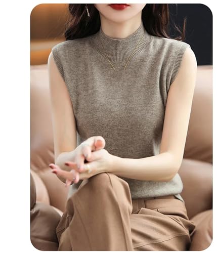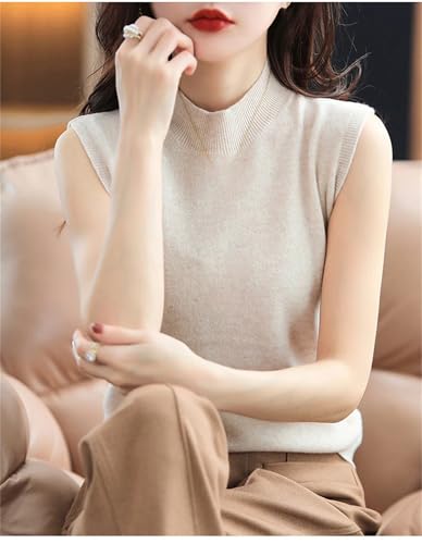 Women Sweater Vest Half High Collar Spring Fall Slim Fit Knit Warm Knitted Pullover Tops Casual Jumpers 6