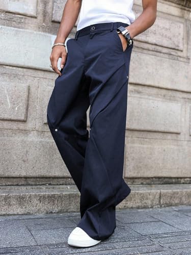 More information about ZAFUL Mens Casual Pants Button Street Solid Color Wide Leg Patchwork Rivet Loose Fit Work Trousers