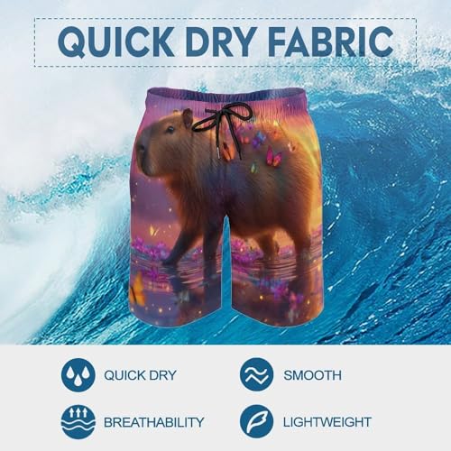 More information about Cute Capybara Butterfly Sunset Mens Swim Trunks Quick Dry Beach Swimming Shorts with Mesh Lining and Pockets