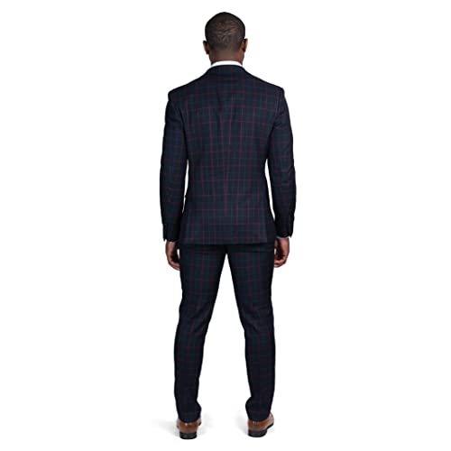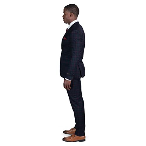 Slim Fit 2 Button Plaid Black & Red Men's Suit Notch Lapel 1675 1