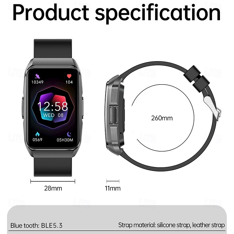 More information about 696 ET650 Smart Watch 1.57 inch Smart Band Fitness Bracelet Bluetooth ECG+PPG Pedometer Call Reminder Compatible with Android iOS Women Men Hands-Free Calls Message Reminder IPX-0 27.5mm Watch Case