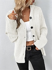More information about Women's Sweater Cardigan Casual Soft Pure Color Ribbed Hooded Buttons Knitted Long Sleeve Regular Tops Knit Outdoor Daily Weekend Black White Fall Winter