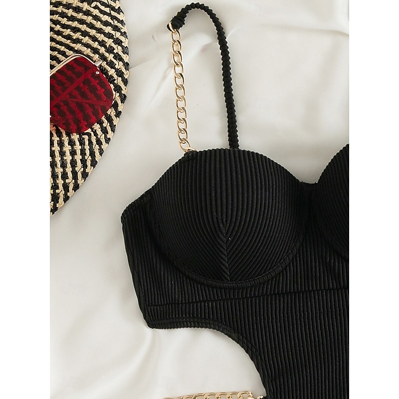 More information about Women's Swimwear Bikini 2 Piece Cheeky Swimsuit Backless Slim Vacation Beach Wear Solid Color V Neck Sleeveless Bathing Suits