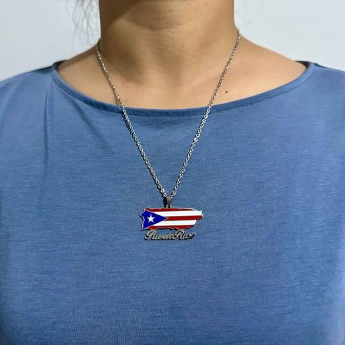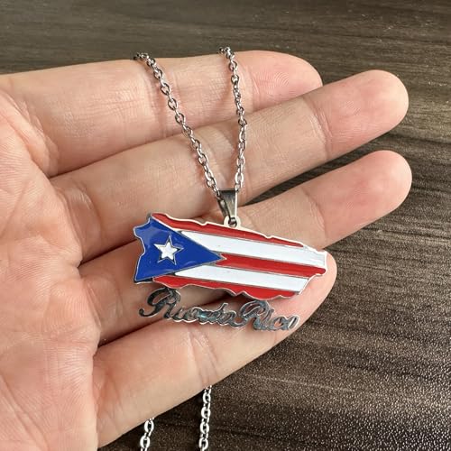 Fashion Stainless Steel Puerto Rico Map Pendant Country Flag Pattern Necklace 5