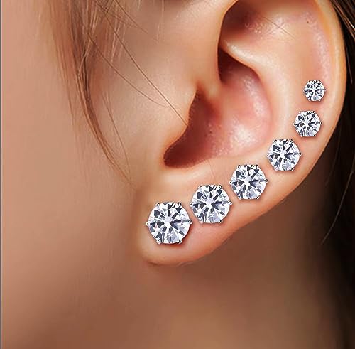 6 Pairs Cubic Zirconia Stud Earrings Set Surgical Steel Hypoallergenic 316L Stainless Steel Earrings for Women Men Contain 3,4,5,6,7,8mm 5