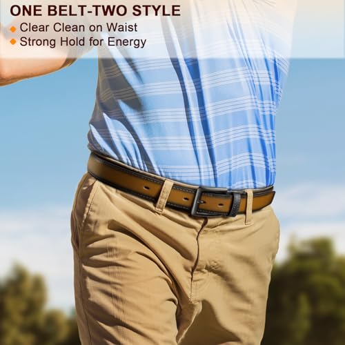 KEMISANT Men Belt,Reversible Leather Belt For Men Gift Casual Dress Golf Pants Jeans Gift Boxed 2