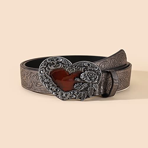 More information about Engraved Flower Buckle Belt Vintage Western Belt Belt Vintage Heart Buckle Belt Embossed Leather Belt Jeans Belt