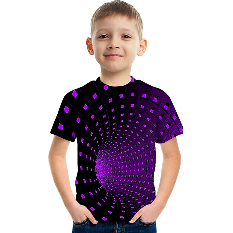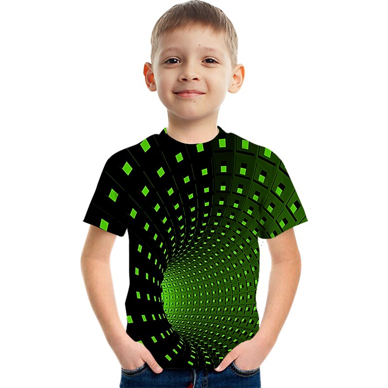HOT ! Boys 3D Color Block Optical Illusion T shirt Short Sleeve 3D Print Summer Active Sports Streetwear Polyester Rayon Kids 2-13 Years Outdoor Daily
