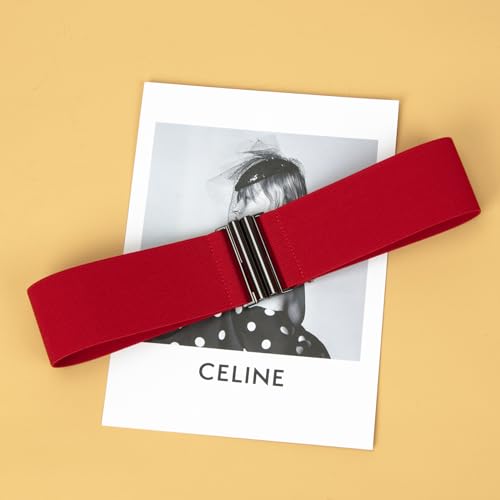 ILuvatar Womens Red Vintage Plus Elastic Stretchy Waist Cinch Trimmer Belt 2.36" Wide Belt Waistband Lady Size XXL 6