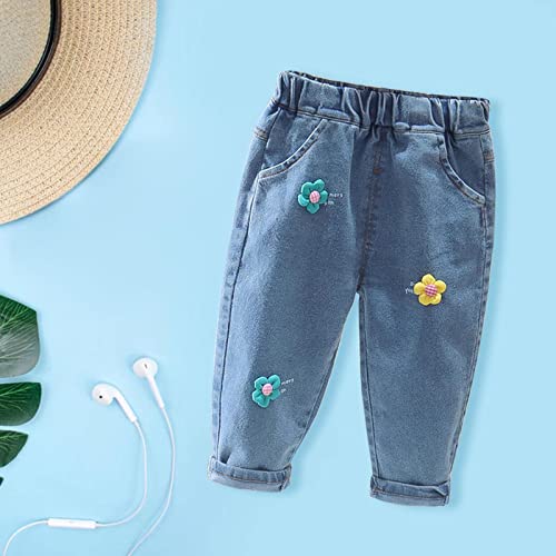 Toddler Baby Girl Baggy Jeans Pull on Denim Pants Flower Print Elastic Waist Trousers Stretch Toddler Fall Clothes 4
