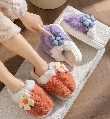 HANDKEI Cute Cartoon Flower Warm and Non slip Women's Winter Home Plush Slippers 6