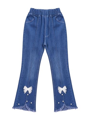 Kids Girls Casual Flare Jeans Raw Hem Denim Pants Washed Bell Bottom Distressed Denim Leggings Trousers 6