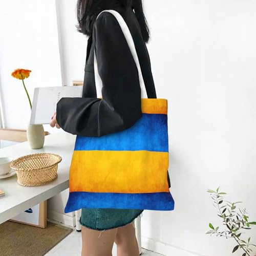 Ukrainian Flag Print Polyester Canvas Tote Bag, Shopping Bag With Reinforced Handles, Reusable 4