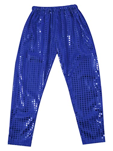 HOT ! FEESHOW Boys Girls Metallic Shiny Loose Baggy Pants Kids High Waist Trousers for Hip Hop Jazz Streetwear Dancewear