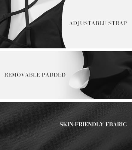 More information about Womens Deep V-Neck Longline Sports Bra, Strappy Criss Cross Padded Cups Adjustable Spaghetti Straps Workout Yoga Crop Top