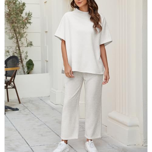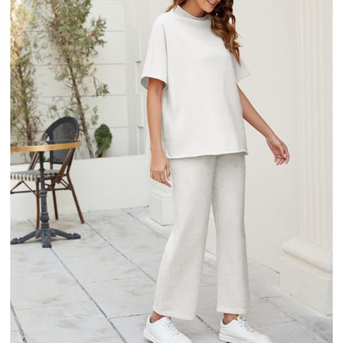 HOT ! Songling 2 Piece Sets For Women Short Sleeve Pullover Tops and Wide Leg Pants Travel Lounge Matching Set With Pockets