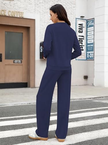 Women's 2 Piece Lounge Set Trendy Boat Neck Sweatshirt Wide Leg Pants Casual Outfits Travel Tracksuit Sets 2