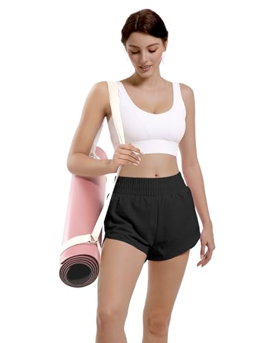 HOT ! Buauty Womens Athletic Running Shorts with Zipper Pocket Workout Gym High Waisted Quick Dry Hiking Shorts with mesh Liner