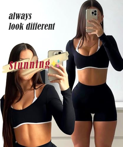 • Long Sleeve Workout Tops for Women: sexy backless,square neck with halter strap,built in bra with removable pad,soft fabric,gym clothes.Versatile shirts for gym,yoga,golf,sports,going out,club,music festival or casual wear.