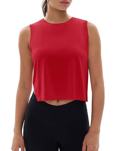 HOT ! MAGCOMSEN Women's Crop Tank Tops Workout Sleeveless Shirts Loose Fit Gym Yoga Top with Side Slits