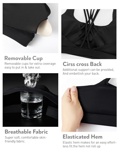 • Low-to-Medium impact Support:The womens sports bras significantly reduce the pressure on your shoulders,allowing you to focus solely on your workout, moving with unrestrained freedom.Beyond comfort, the cross-strap design adds a touch of elegance.The straps gracefully accentuate and refine your back contours, highlighting your physique.