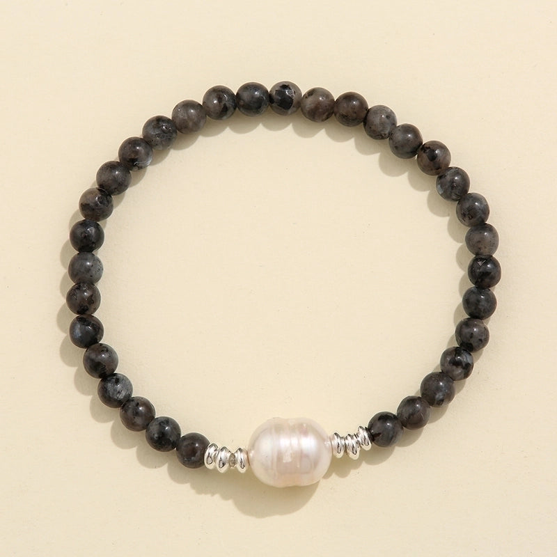 Vintage Style Solid Color Natural Stone Freshwater Pearl Copper Bracelets 5