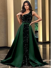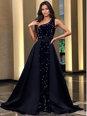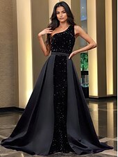 More information about Black Velvet Sequin Mermaid / Trumpet Evening Gown with Detachable Overskirt Elegant Dress Formal Wedding Sweep / Brush Train Sleeveless One Shoulder 2025