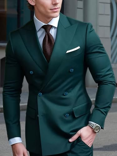 Men's Slim Fit 2 Piece Suit Double Breasted Sports Jacket Pants Set,Business Wedding Prom Tuxedo Suits 7