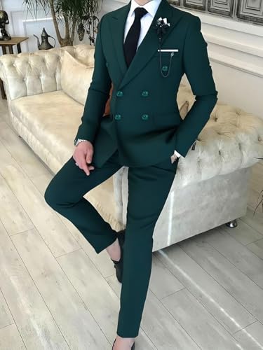 Men's Slim Fit 2 Piece Suit Double Breasted Sports Jacket Pants Set,Business Wedding Prom Tuxedo Suits 6