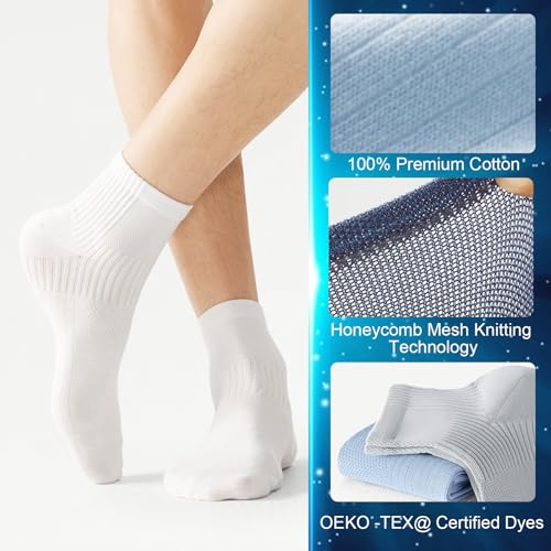 5 Pairs Men's Thin 100% Cotton Ankle Socks with Aloe Vera Infused Moisturizing,Seamless Toe Design,High Elasticity Sport Athletic Running Crew Socks Size 7-10 1