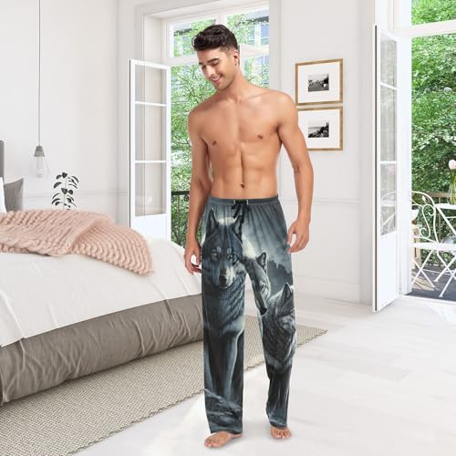 AIXIWAWA Night Wolf Pack Men's Pajama Pants Cozy Sleepwear Mens Lounge PJ Bottoms Pockets Drawstring S 1