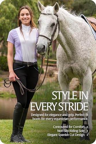 • ✅ Elegant and Functional Design: Spanish top elongates the leg, while stretch leather under the elastic laces facilitates easy on-off. Features spur rests, clean, understated branding, and reusable air-filled boot shapers for maintaining shape during storage.