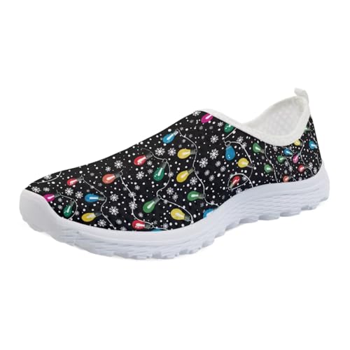 Women Casual Shoes Christmas Printed Breathable Mesh Loafer Slip on Walking Sneaker for Drive Walking 6