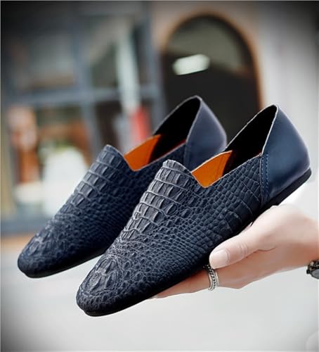 Men's Loafers Rubber Sole Round Toe Faux Snake Print Stitching Details Slip Resistant Comfortable Flat Heel 6