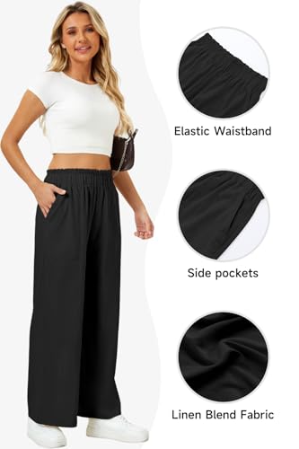 SEMARO Womens Casual Linen Feel Wide Leg Pants High Waist Palazzo Flowy Trousers Beach Vacation Outfits 2025 5