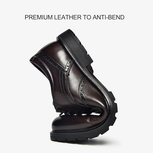 • Full Grain Cowhide: Our mens dress shoes are crafted from full-grain cowhide leather, which retains the natural characteristics of cowhide, such as its fine grain and sturdy texture. These casual oxford shoes for men are not only durable and resistant to wear and tear, but also develop a unique natural grain and lustre over time.