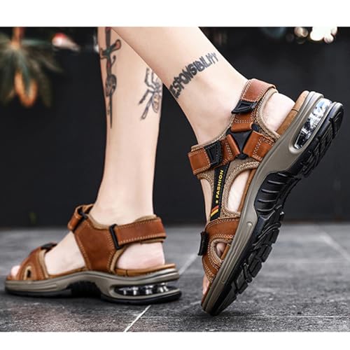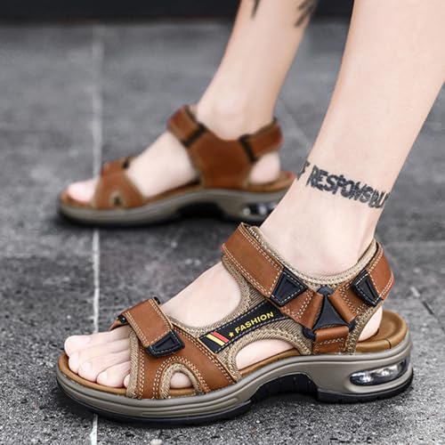 HOT ! MILDSEVEN Men's Hiking Real Leather Sandals, Breathable Classics Sports Open-Toe Sandals, Fashion Outdoor Backpacking Beach Shoes,8,Brown